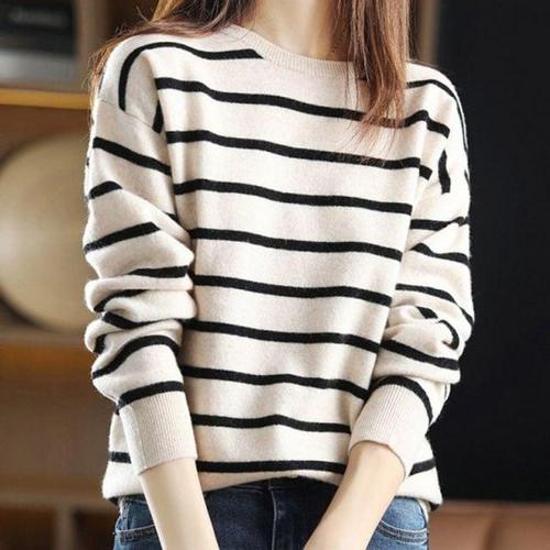 줄무늬 레이디스니트셔츠 스트라이프 풀오버 장팔 데일리 티 WFJIXQ7