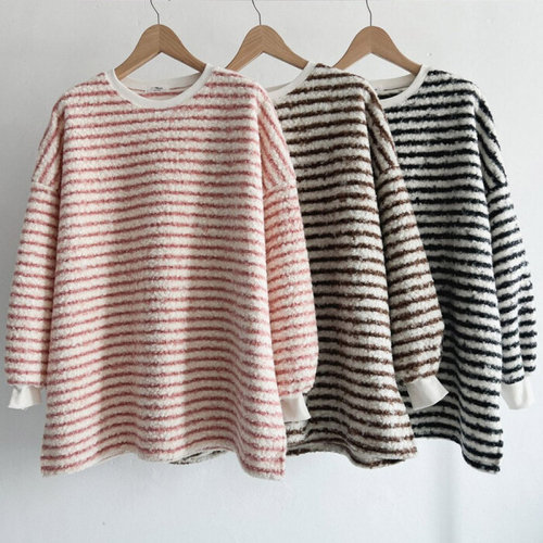 나야홍 / 빅사이즈티 V935L512 줄무늬보송양털티셔츠 NM