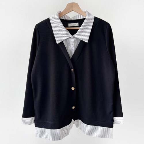나야홍 / 빅사이즈티 V590L512 줄무늬셔츠가디건티셔츠 BS