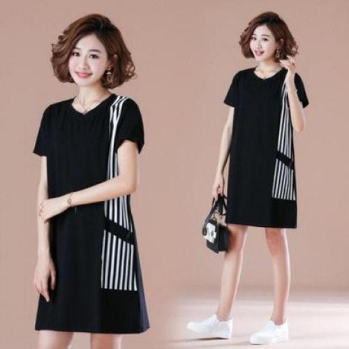 S08170 옆선줄무늬 루즈 얇고 시원한 반팔원피스 롱티 WFL8DJ1
