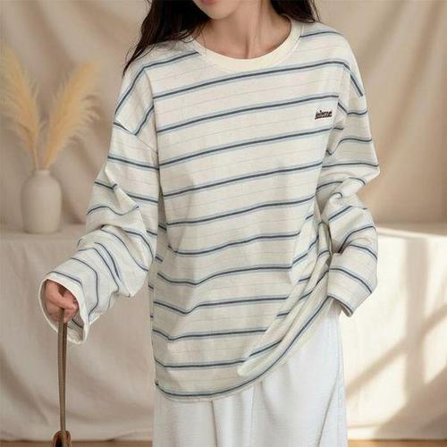 알로데 여성용 루즈핏 스트라이프 긴팔티셔츠