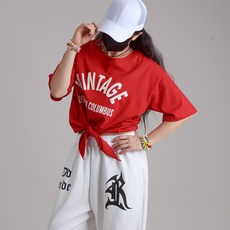 댄마샵 빈티지 매듭 크롭 반팔티 방송댄스복 줌바댄스복 에어로빅복