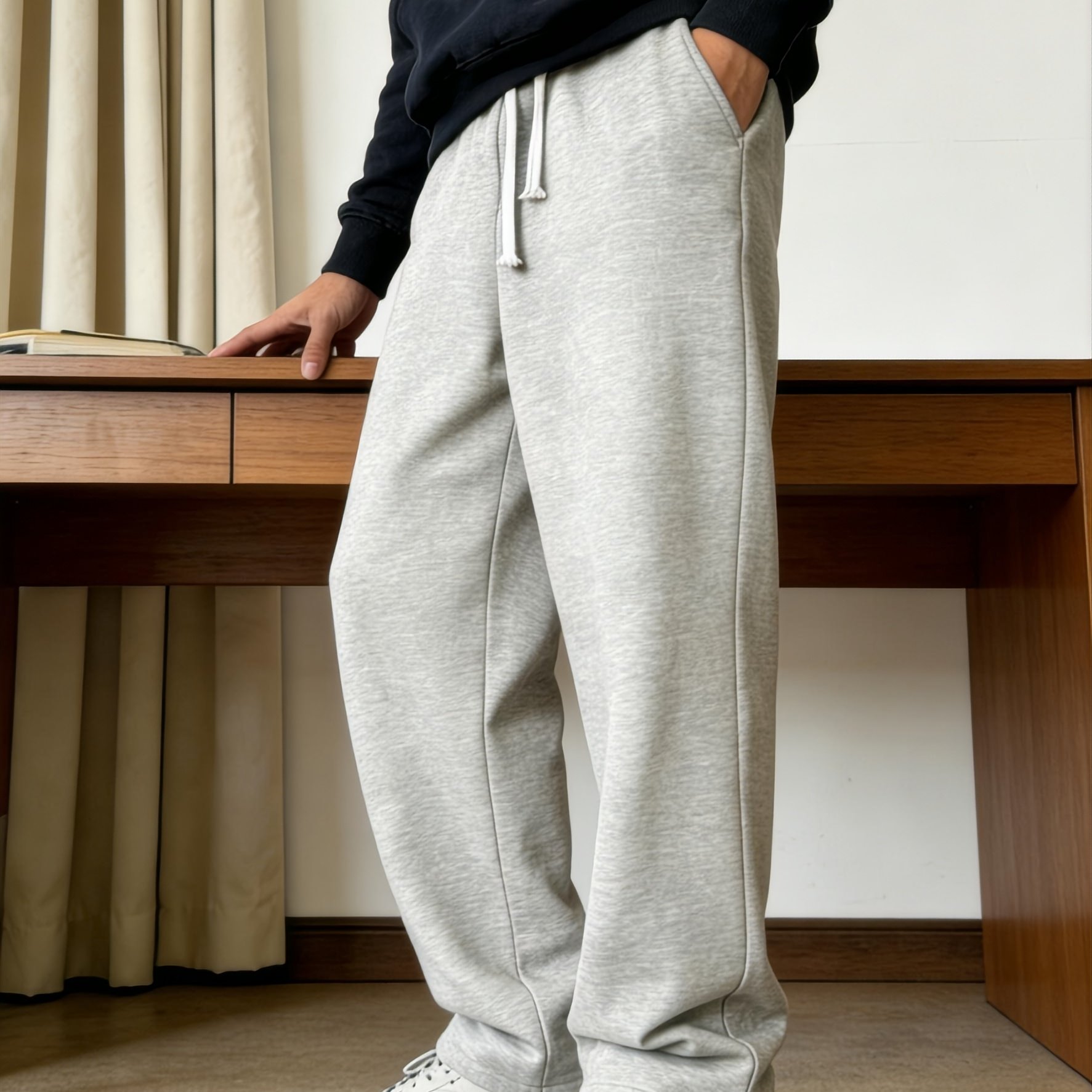 TEMU 남성용 2025년 신상 플리스 조거 팬츠 | 패셔너블하고 캐주얼하며, 및 야외 활동에 적합, 드로스트링 디테일이 있는 단색