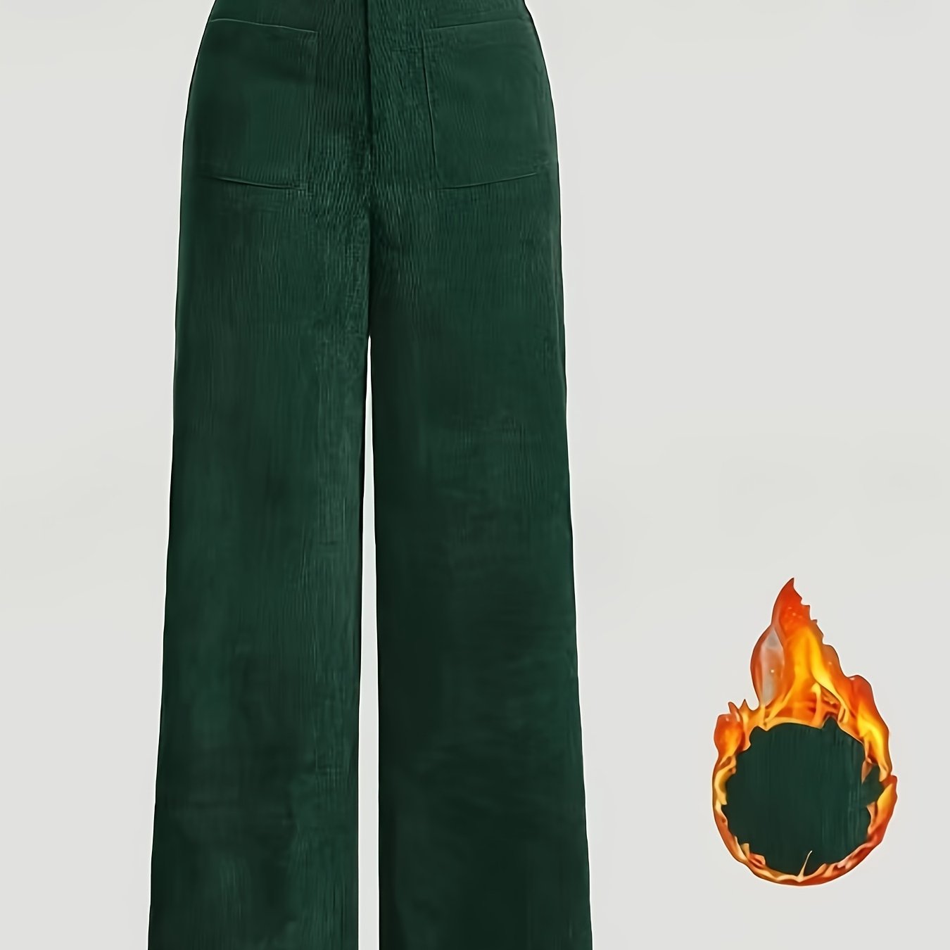 TEMU 여성용 두꺼운 코듀로이 와이드 레그 트라우저 - 겨울 따뜻한 레그 팬츠 (포켓 포함), 단색 캐주얼 트라우저 (가을/겨울용), 세탁기 사용 가능, 여성용 겨울 트라우저, 시즌 패션, 튼튼한 원단, 편안한 착용감, 다용도 하의|냉장고바지|바지|패션