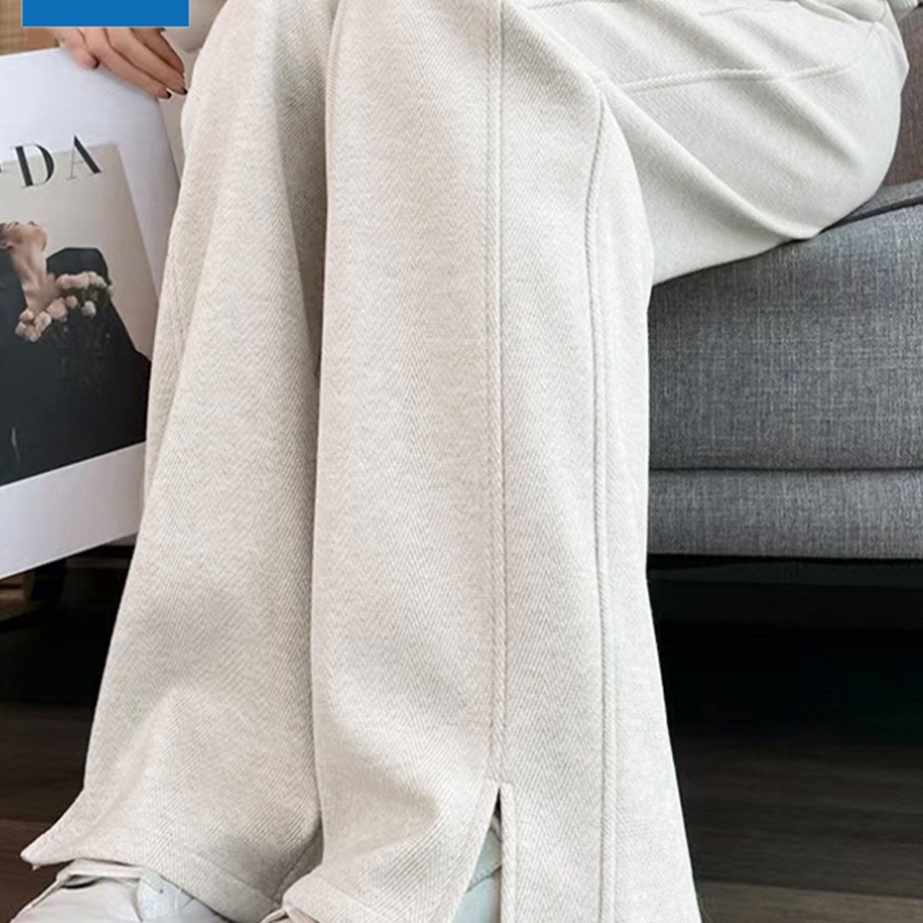 TEMU JEANSWEST 여성용 하이웨이스트 와이드 레그 팬츠 슬릿 - 라이트 베이지 겨울 바지, 두꺼운 보온 원단 (비부피감), 한국-일본 스타일, 기계 세탁 가능 부트컷 & 캐주얼 의상 - 2025 가을/겨울 신상품