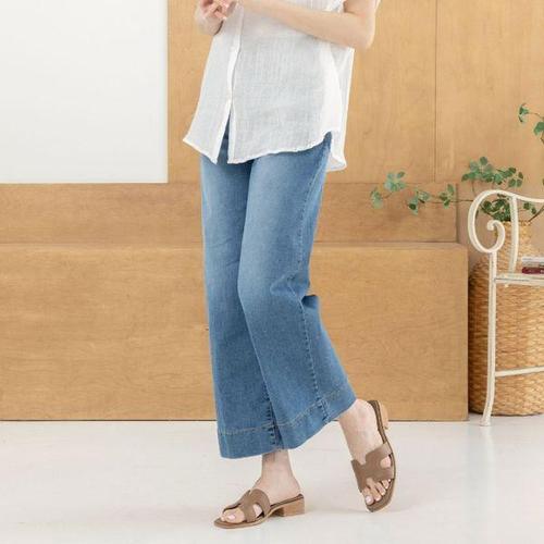 [애슬릿] 7부 청바지 중년 여성 엄마 여름 와이드 데님 팬츠