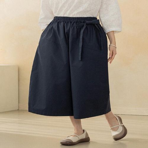 여성용 와이드 면 반바지 빅포켓 고무줄 허리 5부 중년 여름 바지 yis4+3mOp