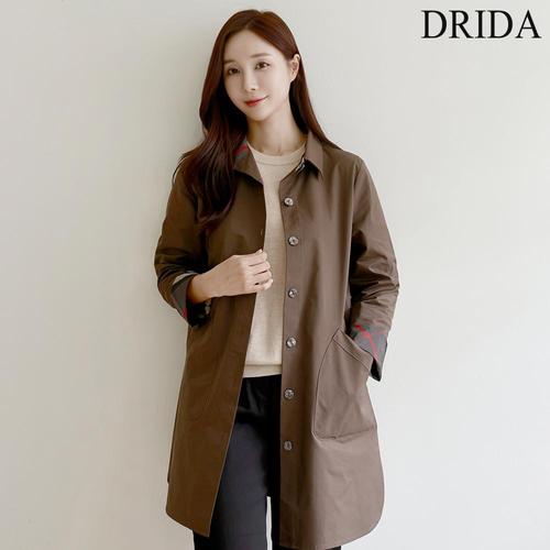 [드리다]드리다 체크 배색 빅사이즈 바스락 메모리 롱 자켓 40-50대 미시 중년여성 엄마옷 하객 모임 출근