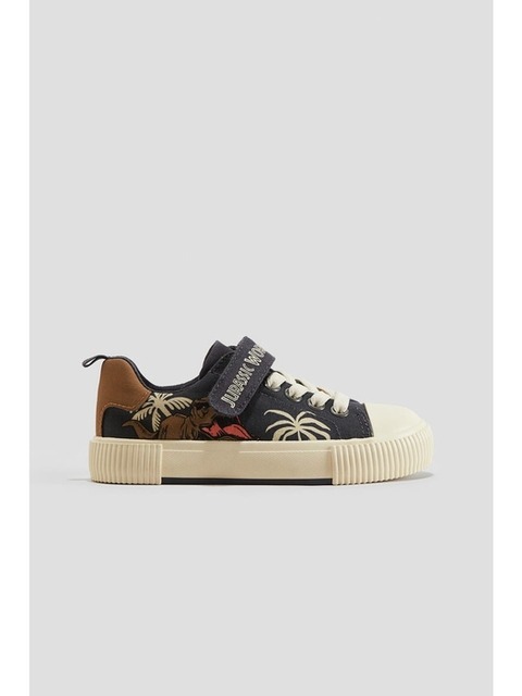 [에이치엔엠] 프린트 코튼 캔버스 스니커즈 다크 그레이/쥬라기 월드 1291078001