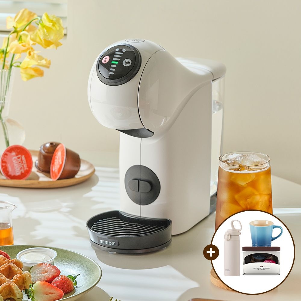 [굿즈] 돌체구스토 캡슐 커피머신 지니오 S 쉐어 스타벅스 앳홈 팩 모카+캡슐 6P 틴케이스 + 글라스 머그370ml