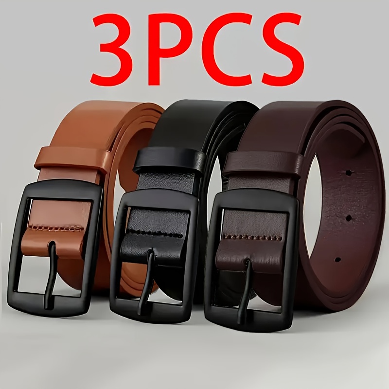 TEMU 남성용 패션 벨트 3종 세트, 합금 사각 버클, 캐주얼 청바지 벨트, 3가지 색상: 브라운/블랙/카키, PU 소재, 고품질 벨트로 일상 및 정장 착용에 적합. 벨트, 남성 패션 벨트, 정교한 공예와 내구성, 광택 있는 합금 버클. 청소년부터 중년 남성까지 캐주얼 팬츠, 카고 팬츠, 데님 의상과 매치하기 적합, 심플한 라인으로 스타일리시한 룩 연출
