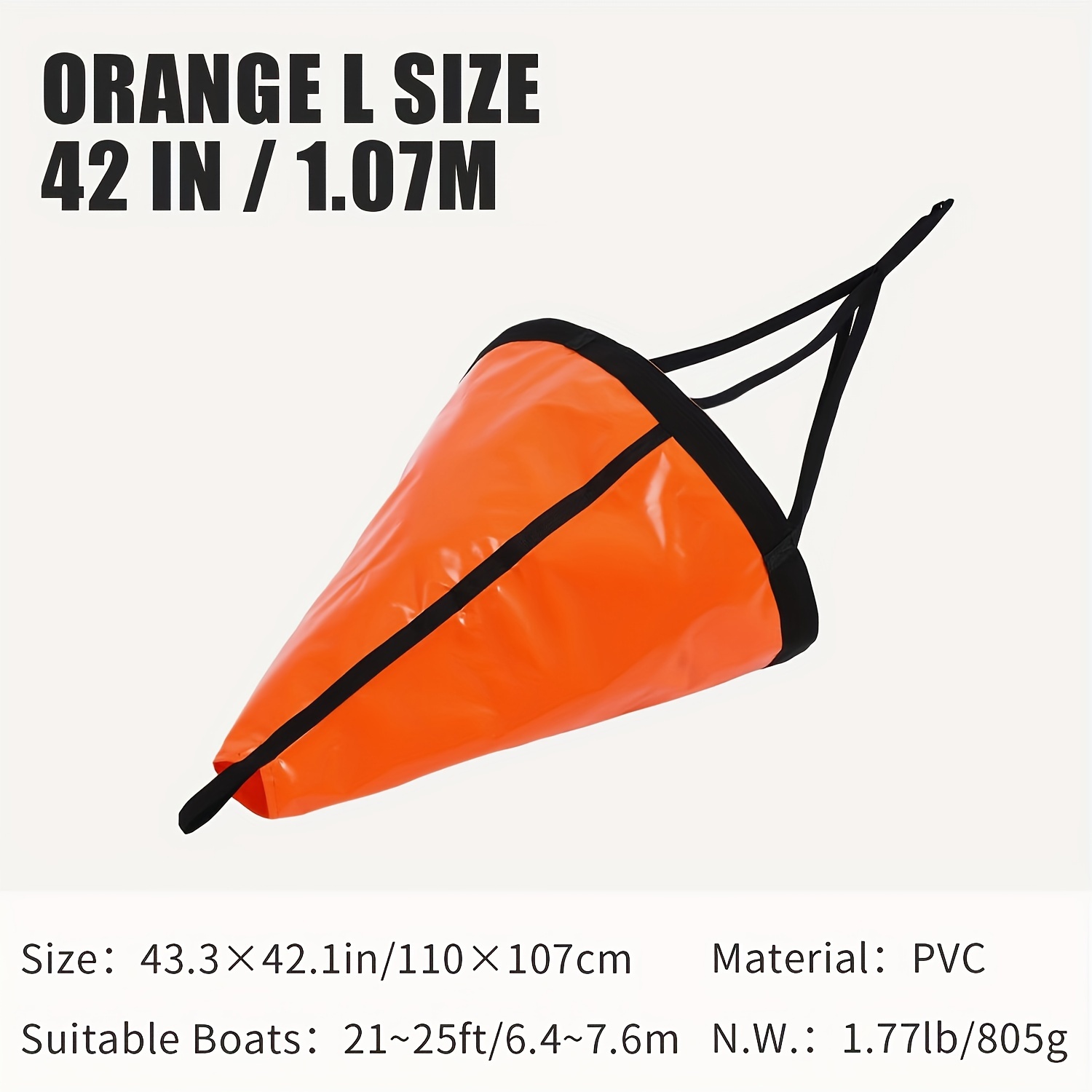 TEMU 보트용 바다 닻 낙하산 드리프트 1개, L 사이즈 42인치, 21~250피트 보트, 패들보드, 카약용 드리프팅 삭