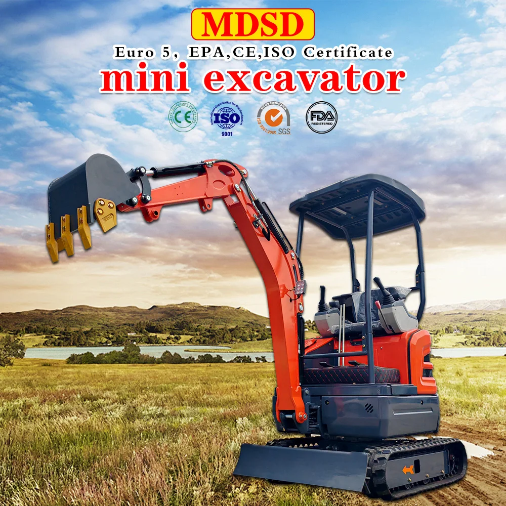 0.8-2톤 경량 미니 굴삭기 마이크로 디거 간편 조작 소형 굴삭기 CE/EPA 인증 가정용 뒷마당 도랑 개조용