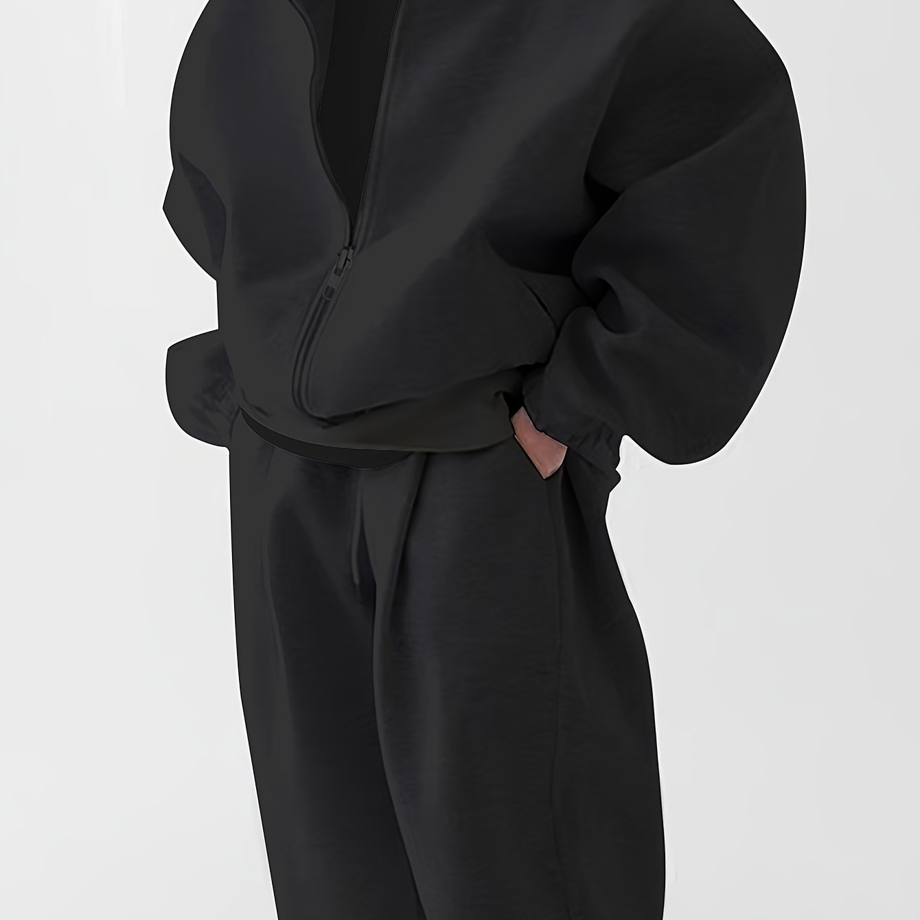 TEMU 남성용 후드 스웨트셔츠와 팬츠 세트, 플러시 후디, 홈웨어 힙합 슈트, 단색, 루즈핏 지퍼 디테일, 가을 겨울 파티 스타일 라운지웨어