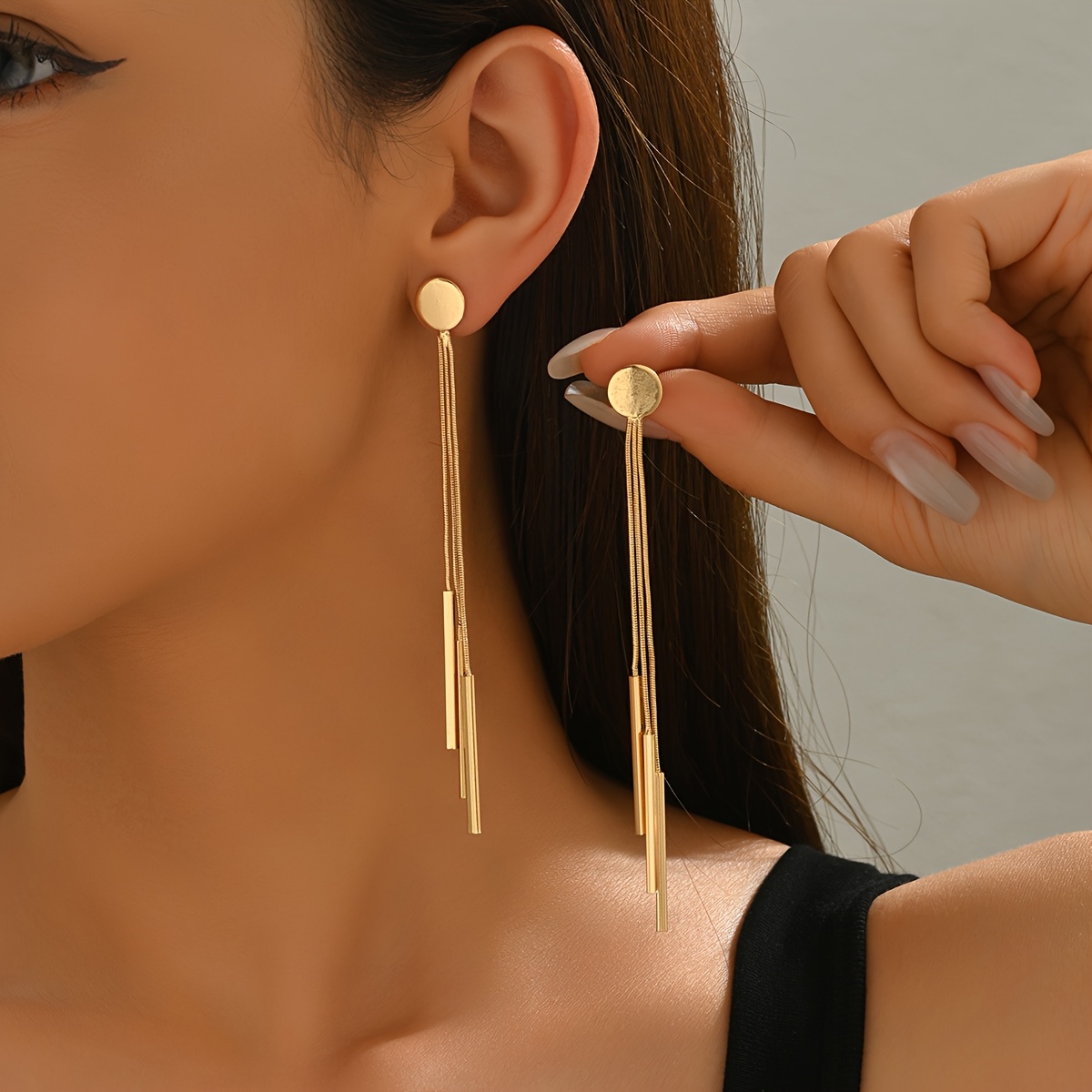 TEMU 세련되고 창의적인 기하학적 롱 펜던트가 특징인 여성용 귀걸이 한 쌍입니다. 라운드 스터드 귀걸이가 함께 완성됩니다. 이 롱 태슬 귀걸이는 일상적인 캐주얼 웨어, 출퇴근, 그리고 다용도 액세서리 옵션으로 완벽합니다.