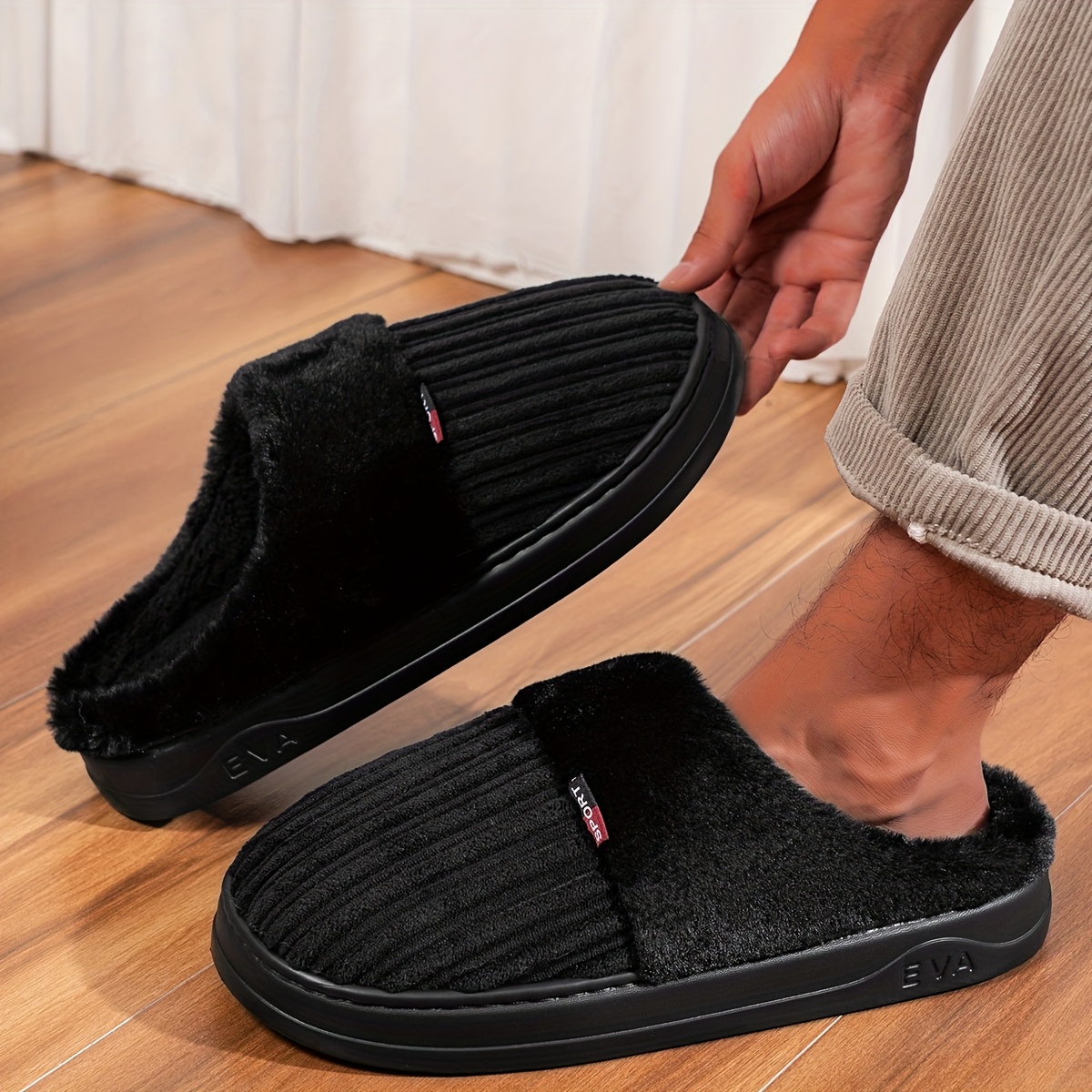 TEMU 심플하고 스타일리시한 커플용 겨울 털이 홈 슬리퍼, 편안하고 따뜻한 남성용 슬리퍼, 우아한 플러시 안감, 트렌디한 소프트 솔 털이 실내화, 플러시 벨벳 홈 슬리퍼