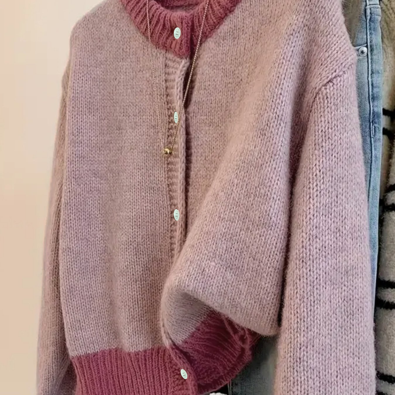 TEMU 여성 가을/겨울 라운드넥 가디건, 젊고 다재다능한 컬러 블록 니트웨어로 따뜻하고 스타일리시하며 고품질이며, 사무실 통근, 일상 외출 및 홈 릴렉스에 필수적입니다.
