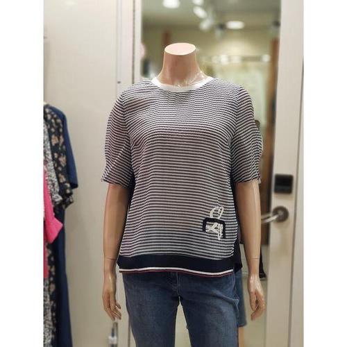 [지센]25SS] 여성 스트라이프 패치 5부 티셔츠 LCTSP427_GE