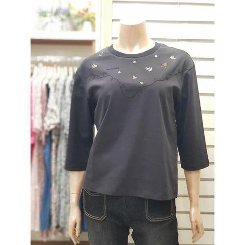 [지센]여성 스몰자수 라운드 7부 티셔츠 SZLCTSP827_LK