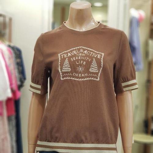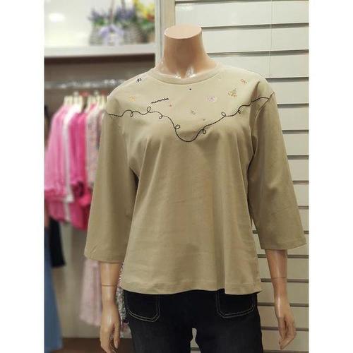 [지센]여성 스몰자수 라운드 7부 티셔츠 SZLCTSP827_DG