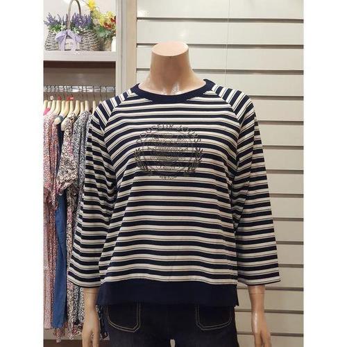 [지센]25SS] 여성 스트라이프 패치 5부 티셔츠 LCTSP427_NA