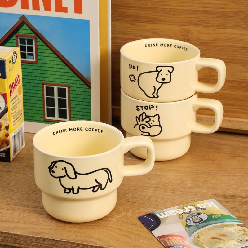 [해외] 북유럽 크림 강아지 도자기 머그컵 쌓을수있는 커피잔 우유잔 3P