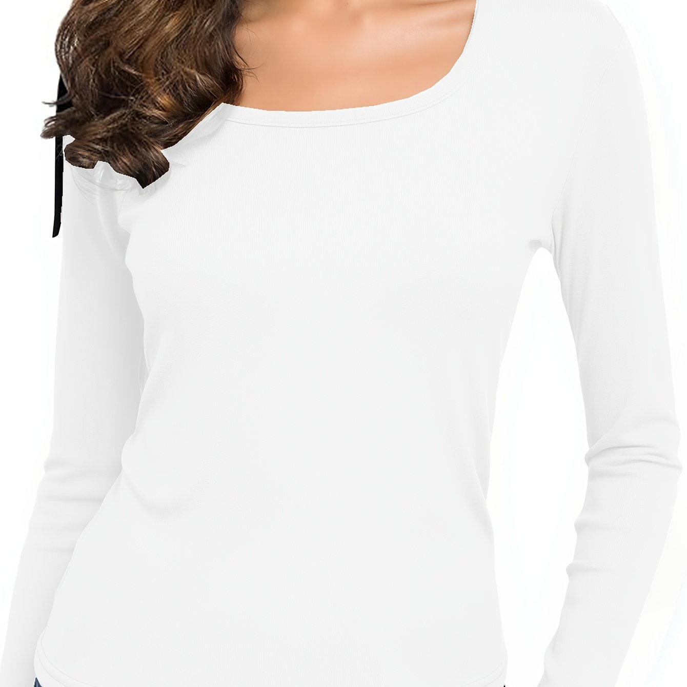TEMU 스퀘어넥 베이스 레이어 여성용 가을 겨울 슬림핏 보온 긴팔 티셔츠