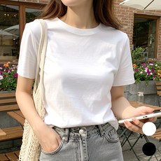 엠제이스타 여성 라운드 무지 반팔티 반소매 티셔츠 여자 흰티 면티 기본 반팔 티