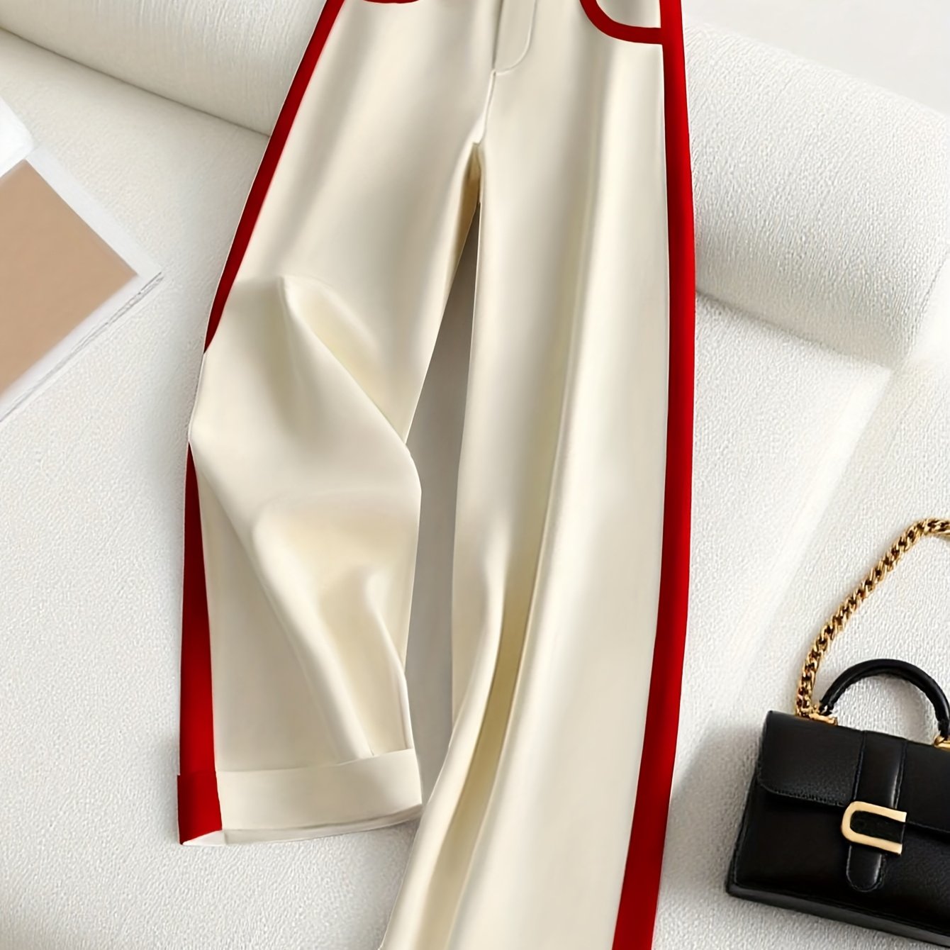 TEMU 여성용 어반 스타일 블랙 & 화이트 대조 스티칭 와이드 레그 팬츠, 캐주얼 하이웨이스트 트라우저, 데일리 커뮤팅 웨어