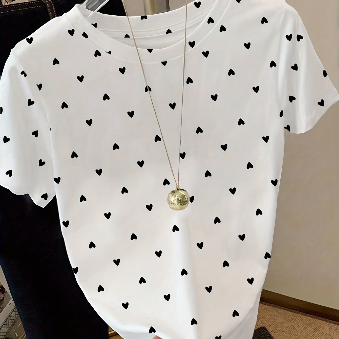 TEMU 여성용 우아한 심플 라운드넥 프린트 반팔 티셔츠