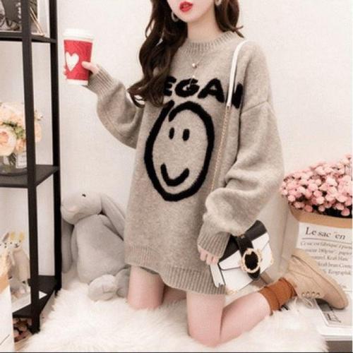 루즈핏 겨울 니트 스웨터 라운드넥 롱티 스마일 WFLMQZ6