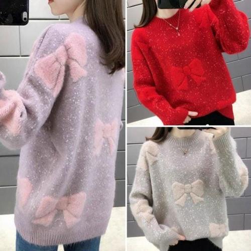 TEMU 랜턴 슬리브 풀오버 여성 라운드넥 스웨터 루즈핏 가을 겨울 크롭탑