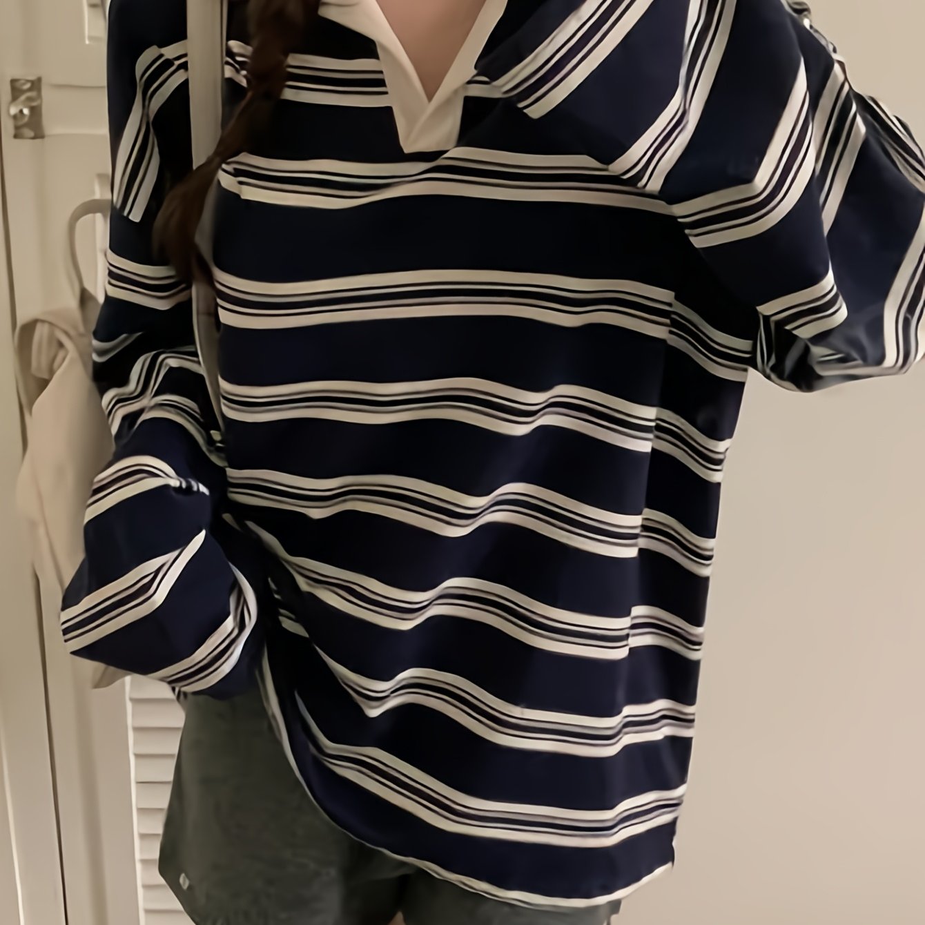 TEMU 스프링 네이비 컬러 블로킹 칼라, 스위트 쿨 스타일 캐주얼 웨어, 스트리트 스타일 및
