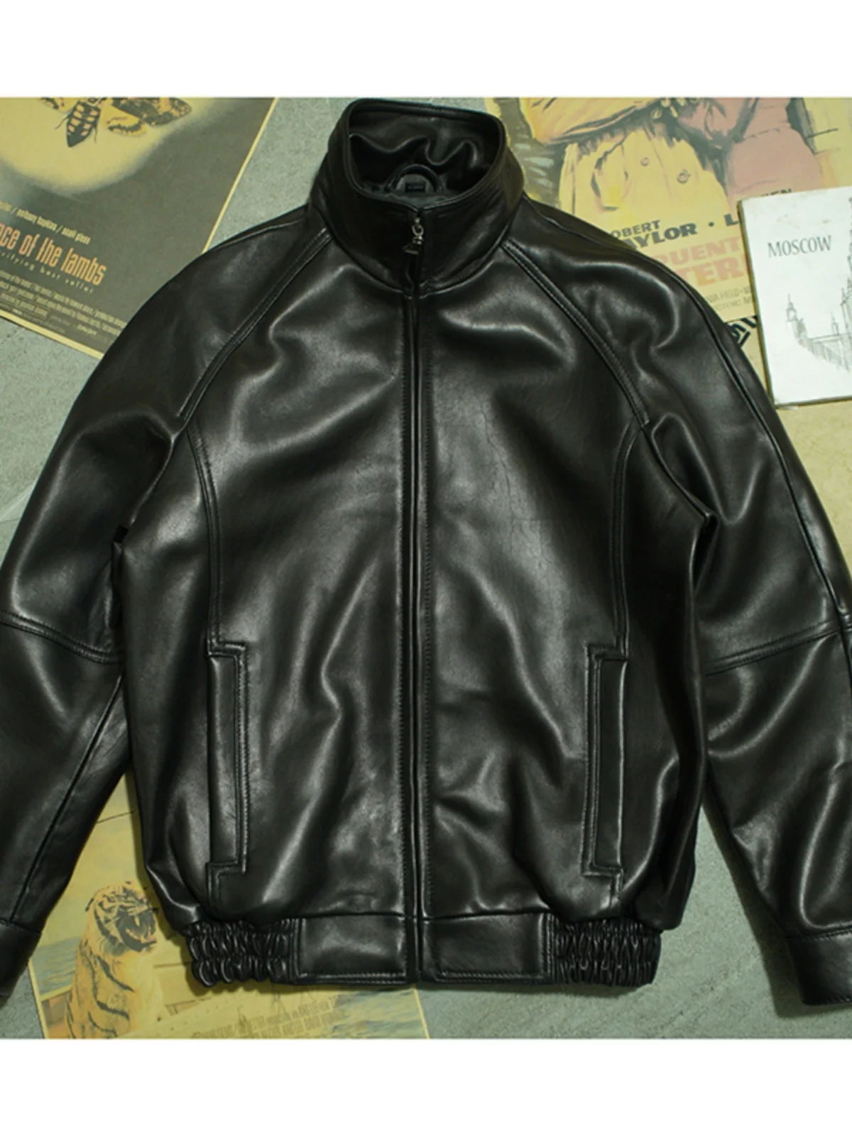 레더 바시티 봄버 재킷