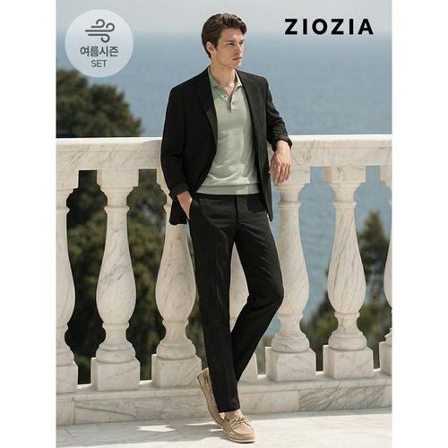 [지오지아]스탠다드 폴리 써커 블랙 사이드 트임 셋업 수트 (AEE2KG1601_AEE2PP1601_BK)