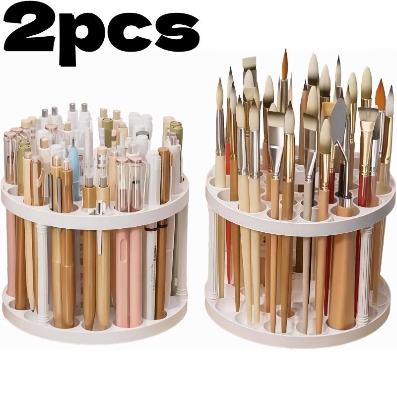 TEMU 2개 패션 브러쉬 홀더 | 스타일리시한 화이트 플라스틱 보관함 (미술 브러쉬, 펜, 메이크업 도구용), 벽걸이형, 광택 마감, 공간 절약형 데스크탑 액세서리 (메이크업 룸, 사무실, 미술 스튜디오용)