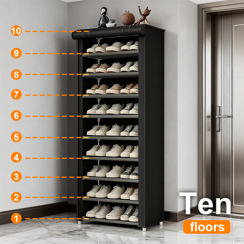 TEMU 6/8/10단 블랙 신발장, 부직포 커버 포함, 가볍고 휴대 간편한 디자인, 조립 쉬움, 현관, 침실, 거실에 이상적, 컴팩트하면서도 넉넉한 공간—홈 신발 보관 필수품, 신발 정리의 최고의 선택