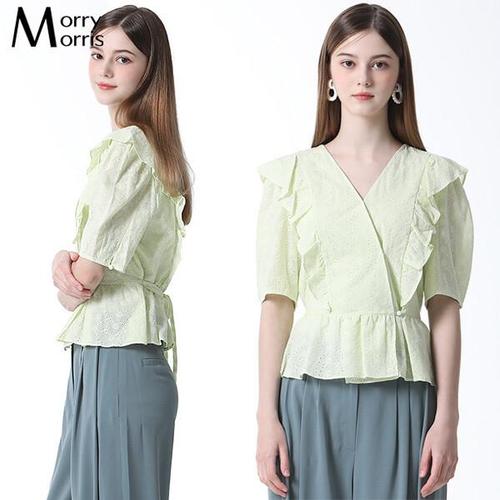 [모리모리스]MARIO프릴 브이넥 펀칭 블라우스 (택가격 78000원)