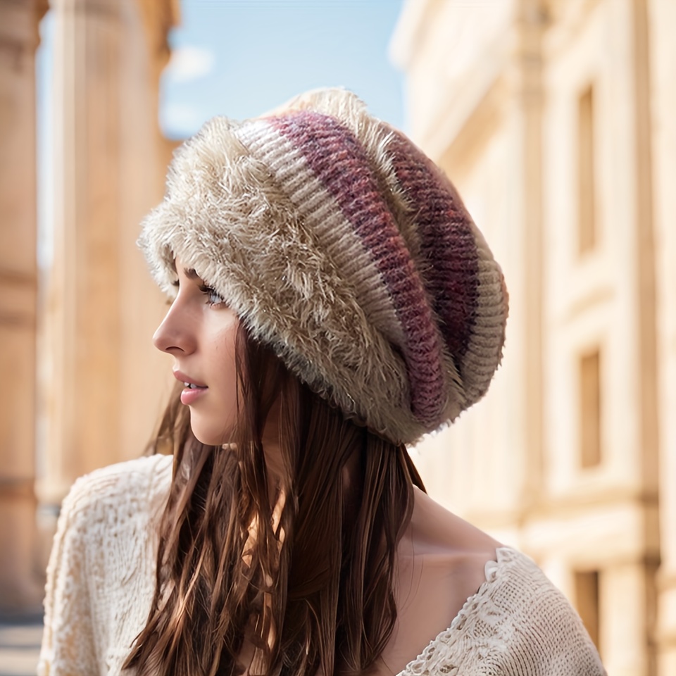 TEMU 여성용 가을 겨울 패션 아웃도어 캐주얼 플러시 두꺼운 귀 보호 풀오버 모자