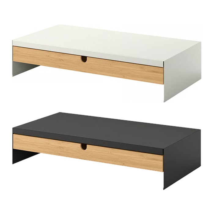TEMU 블랙 PVC 모니터 스탠드 (수납서랍 & 수납선반 포함), 인체공학적 PC/노트북용 사무실&게이밍 데스크탑 리프