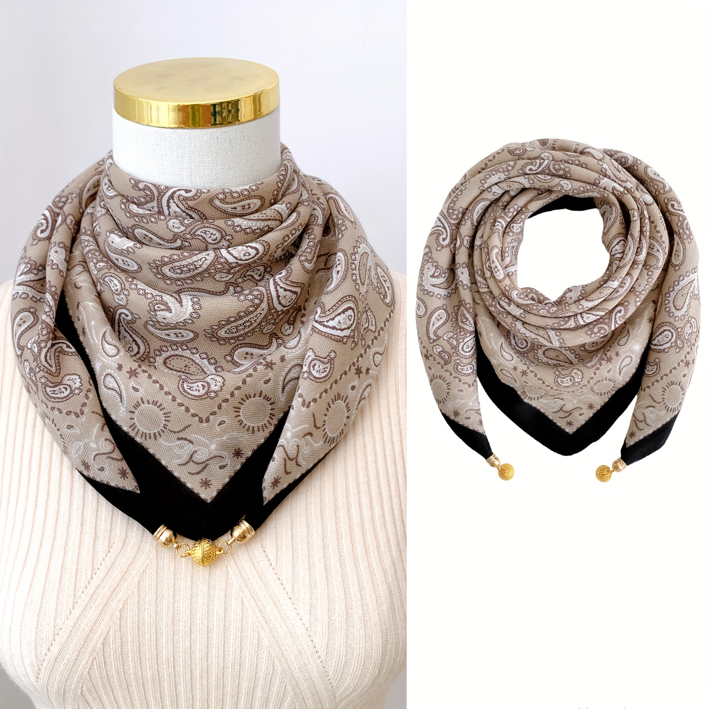 TEMU 패션적인 페일리 패턴 스카프 (자석 잠금 장치 포함), 안전하게 유지되도록 디자인됨. 다양한 스타일과 색상으로 제공, 가볍고 통기성이 좋으며, 해변 파티에 적합하며 휴일 외출에 필수품입니다. 가을철의 따뜻함에도 적합합니다.