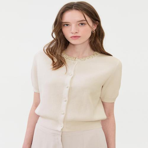 질스튜어트 뉴욕 여성 베이지 비즈장식 면혼방 반팔가디건 (WJSW5B220I1)