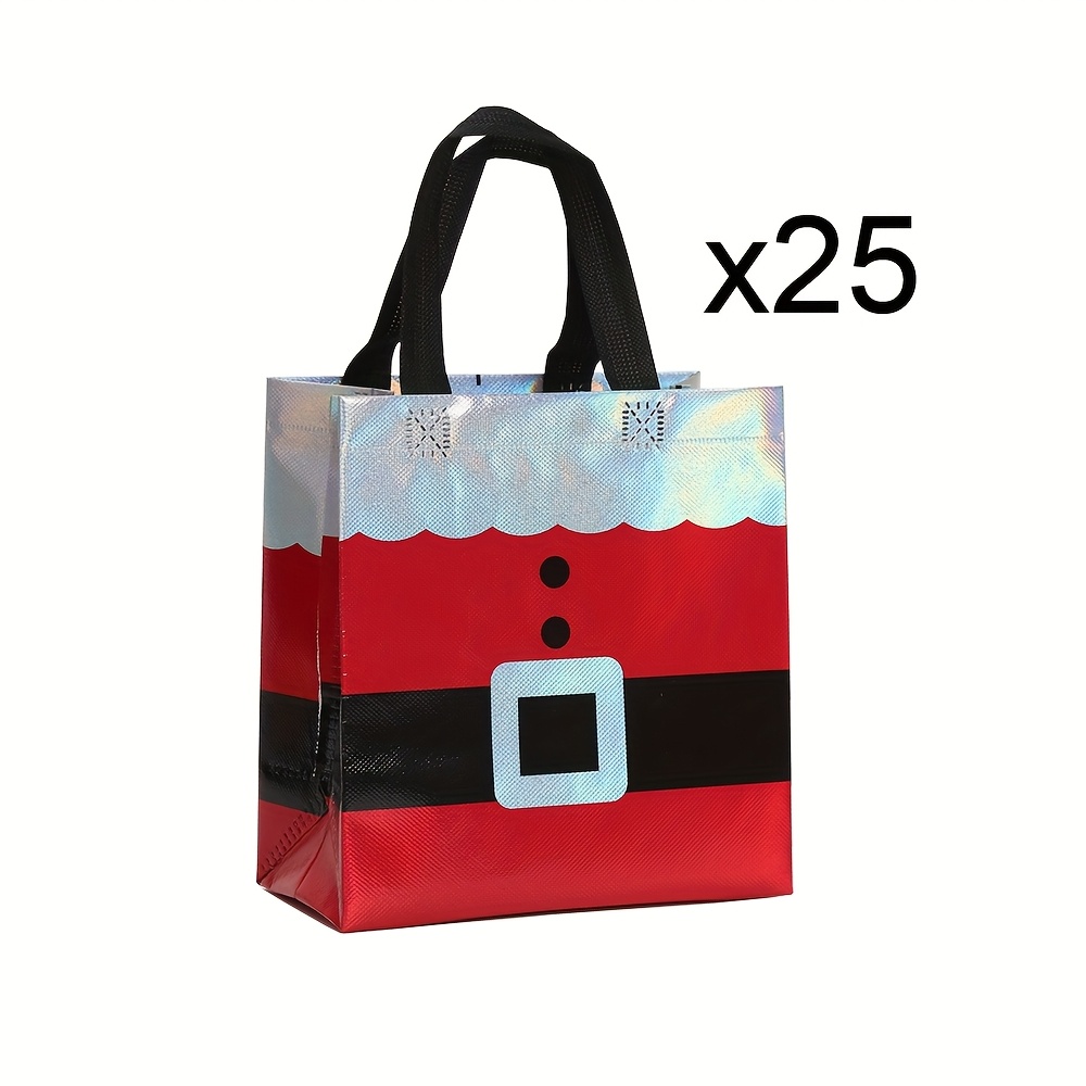 TEMU 그녀/남자를 위한 선물 25개 크리스마스 선물 가방 (손잡이 포함), 네온 레이저 레드 부직포 선물 가방, 크기 9인치 X 8.46인치 X 4.33인치, 만화 파티 토트백, 쇼핑용 소매 포장 가방, 새해, 생일 선물로 적합