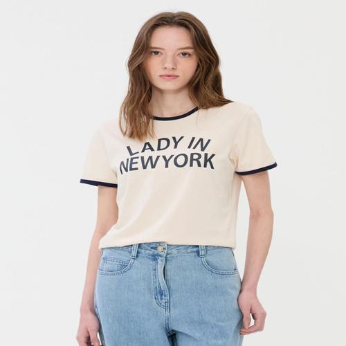 질스튜어트 뉴욕 여성 25SS 스테디셀러 베이지 프린트배색 면 반팔티셔츠 WJTS5B920I1