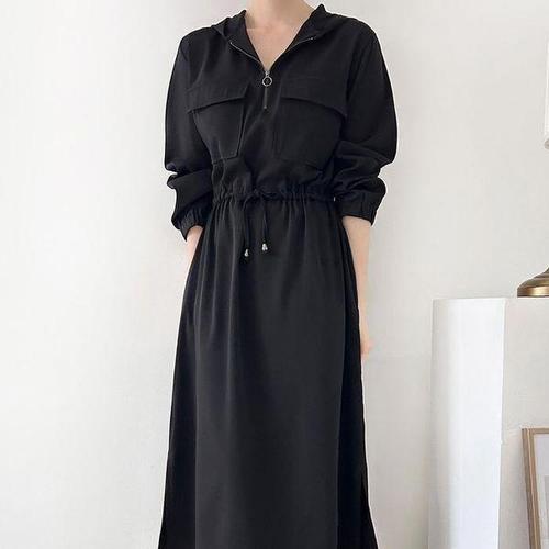 베루라 허리밴딩후드원피스 반집업긴팔미디원피스 헤일락후드원피스