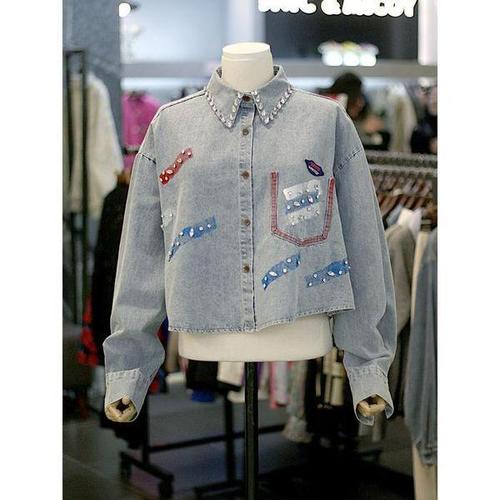 [르니앤맥코이]세이브존03 페인팅 찡 포인트 크롭 데님 블라우스 AQMN05BL010HJY-1A