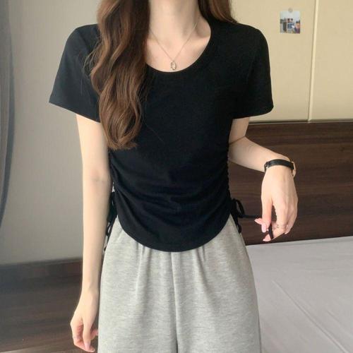 [오너클랜]인기상품 여성 2컬러 여름 옆 셔링 스트링 찰랑 반팔 티셔츠 [WFF94DE_250916]