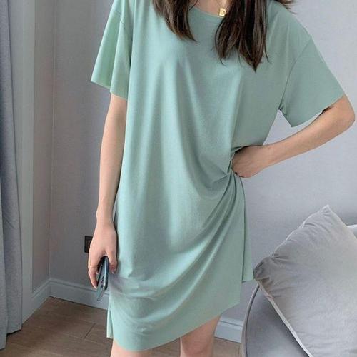 [에이치플러스몰]무지 찰랑 반팔 롱 원피스 홈웨어