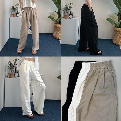 [에이치플러스몰]여자 여름 통바지 쿨링 찰랑 밴딩 플리츠 와이드 팬츠