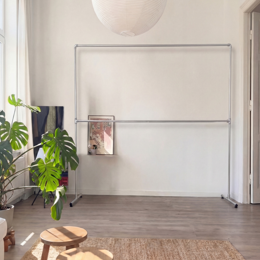 아다만트 창고 빈티지 파이프 행거 2단 고정식 이동식 대형 원룸 시스템 선반 붙박이장